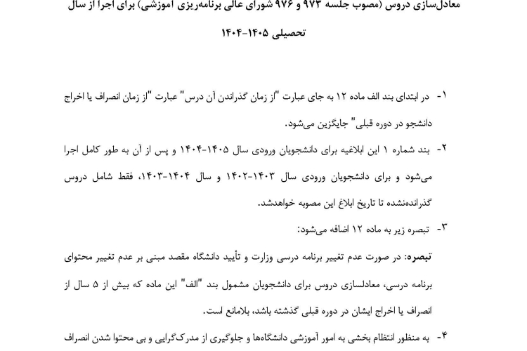 اطلاع رسانی پیرامون اصلاحیه ماده 12 آییننامه یکپارچه مقررات آموزشی دورههای تحصیلی کاردانی، کارشناسی، کارشناسی ارشد و دکتری تخصصی