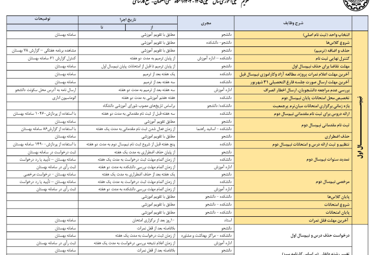 تقویم تفصیلی آموزشی ویژه مقطع کارشناسی