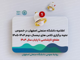 اطلاعیه دانشگاه صنعتی اصفهان در خصوص نحوه برگزاری کلاسهای نیمسال دوم ۱۴۰۴-۱۴۰۵ مقطع کارشناسی تا پایان سال ۱۴۰۴